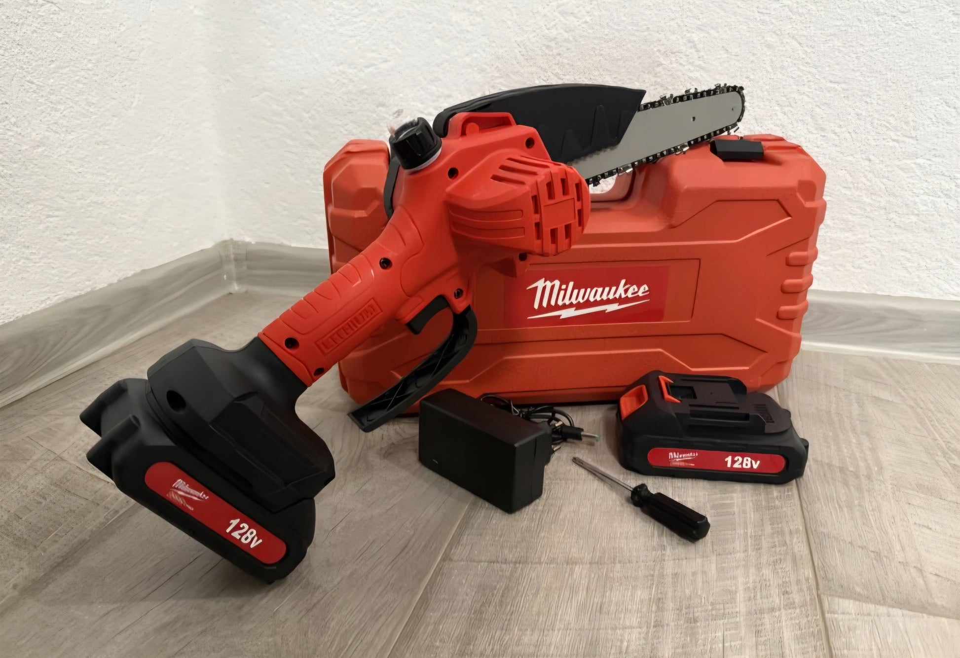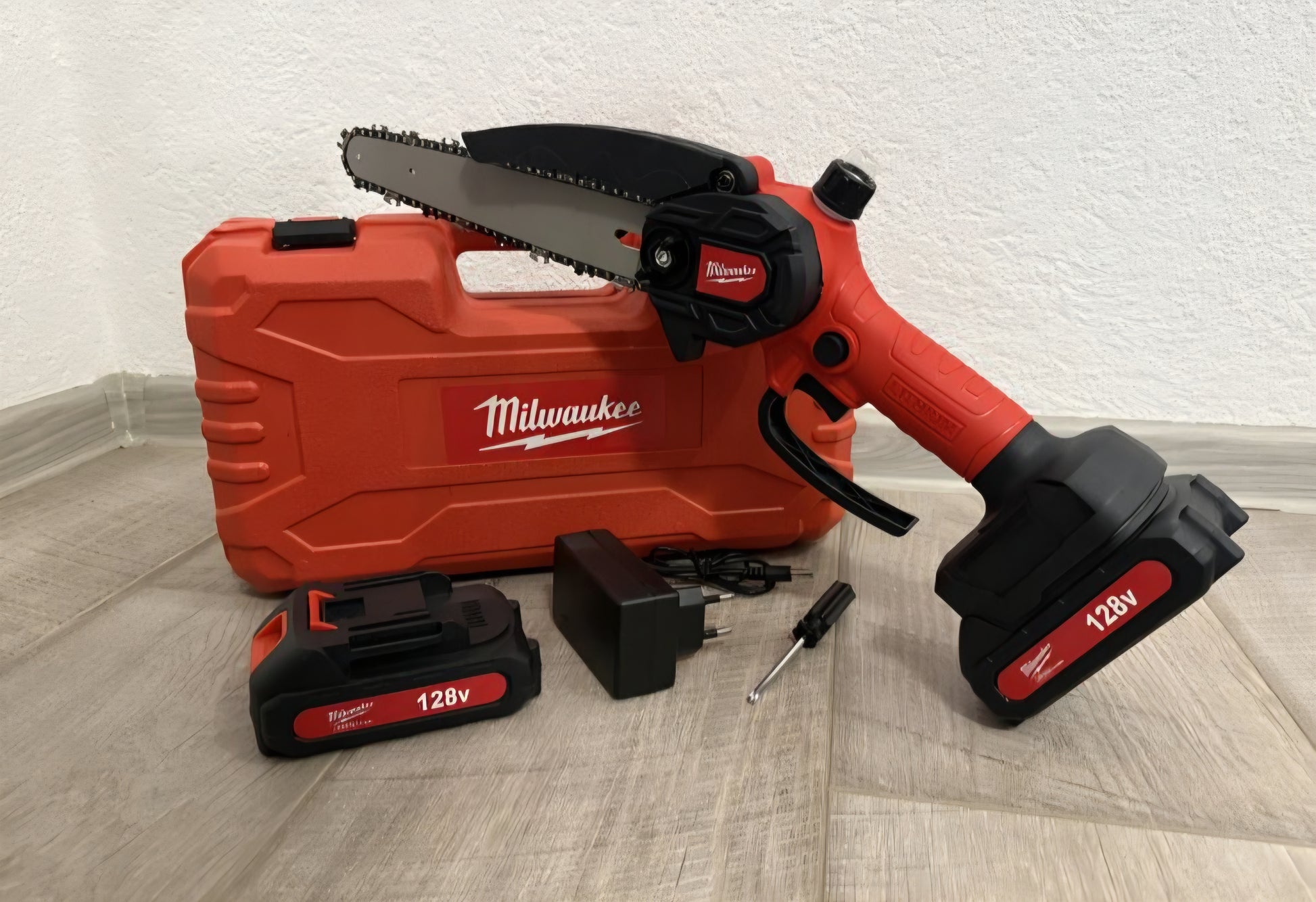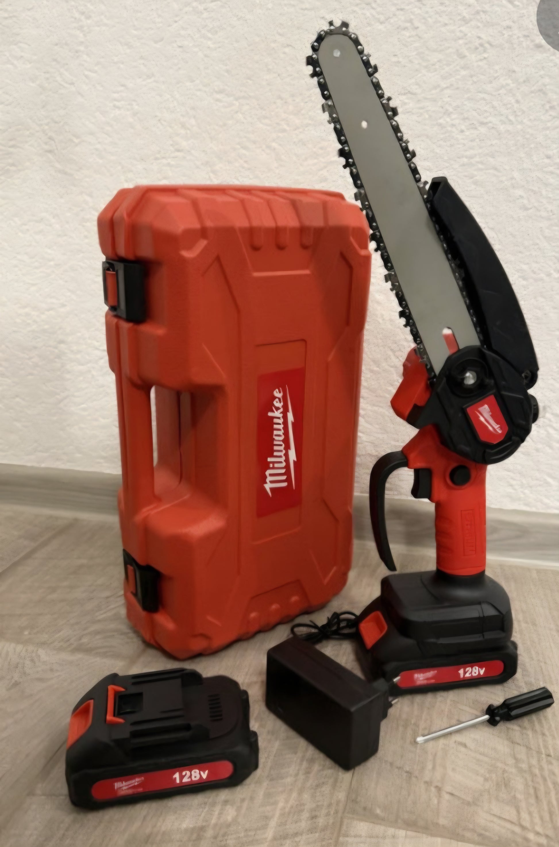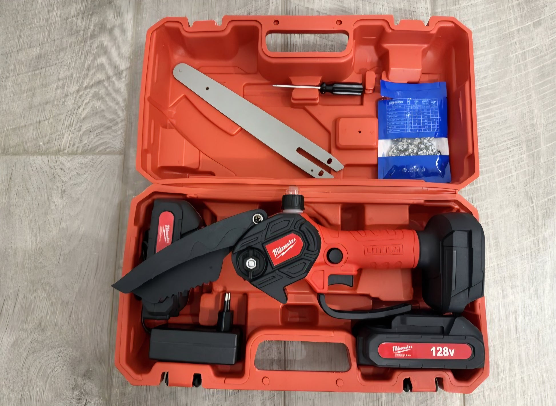 🔋🪚 Aku Pila – Motorka (Milwaukee stil) | s rezervarom za ulje 128V | 2 Baterije